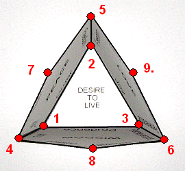 1) The triangle with sides formed out of Joy, Order, and Prudence represents the Desire to Live.