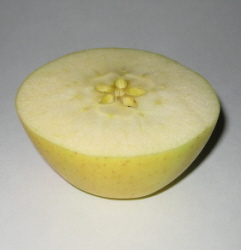 X) The greedy state of the will, as explained earlier, can be associated with what Jesus said: "From within people, from their hearts, come evil thoughts ..." (Mark 7:21). This condition can also be correlated with the Biblical original sin. The Bible symbolically describes the behavior of Adam and Eve (Genesis 3:1-7). The first people tempted by evil ate the fruit of the forbidden tree, which was accessible to them. The Bible does not describe this fruit because it and the tree "knowledge of good and evil" are only symbols used in this story. In other words, the tree might be called the tree of "the fruits of wisdom". Wisdom is not a bad feature, after all, a tree of wisdom grew in God's garden. But the first people were not yet ready to "enjoy its fruits." The garden also contained a tempter. He did not have any impact on God but he had one on the people. In my model Wisdom is made up of five components, which form a "pentagonal area of wisdom" in the spiritual sphere. Perhaps the symbolism of the forbidden fruit was not accidental in this story. Some fruit, such as the apple, feature the shape of the pentagon in their internal structure. We just have to slice them in half to see the tops of the five seeds designating the pentagon (see photographs below).